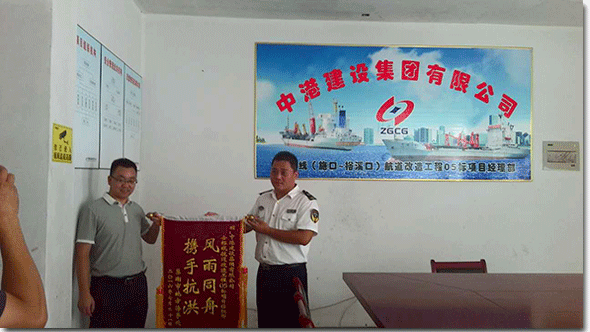 2016年8月12日下午13:00,巢湖市地方海事處通航科何科長、安全科王科長等一行三人到中港建設集團有限公司-合裕線航道改造工程05標項目部駐地頒發防汛救災表彰錦旗。...